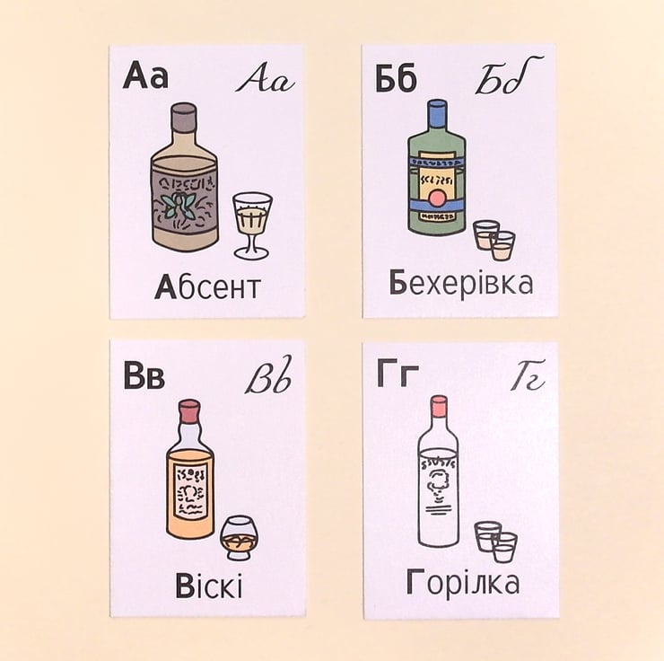 Ukrainian Alphabet of Alcohol - flashcards to learn Cyrillic
