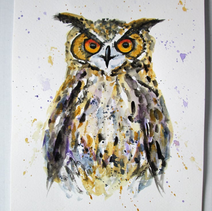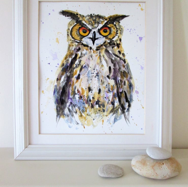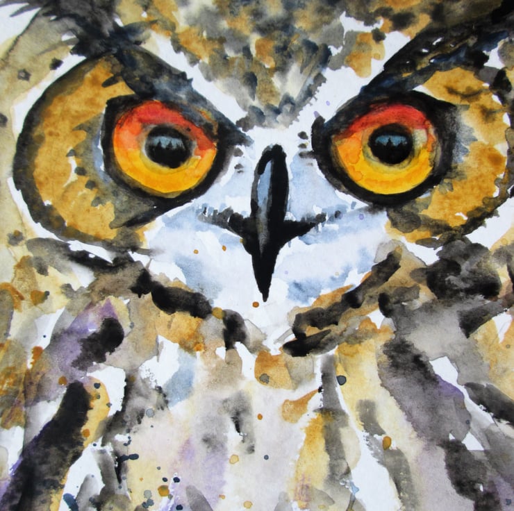Abstract owl painting in watercolours on quality watercolour paper.