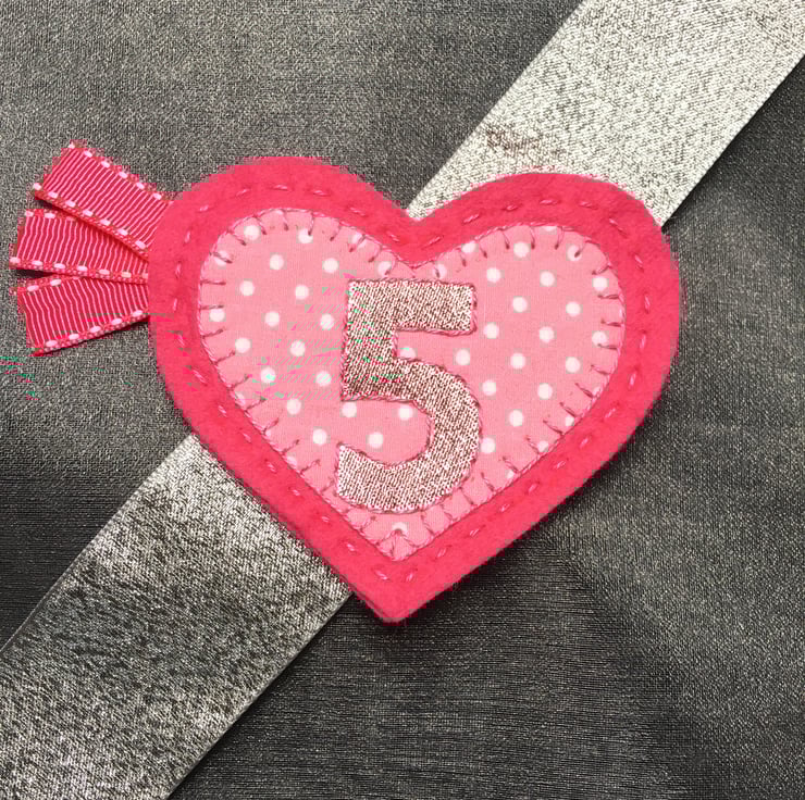 A special touch for a special birthday. This pretty pink heart badge/ rosette will be a lovely keepsake to remember a little one's (or big one's) special day.