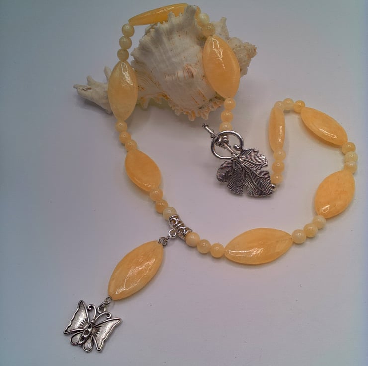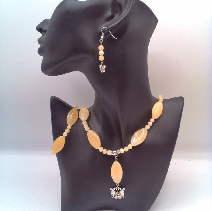 Lemon Jade Necklace with Butterfly Pendant Bracelet and Earrings, Gift for Her, Jade Necklace, Jade Bracelet, Jade Earrings, Butterfly Necklace, Butterfly Earrings, Birthday Gift, Anniversary Gift, Gift Set