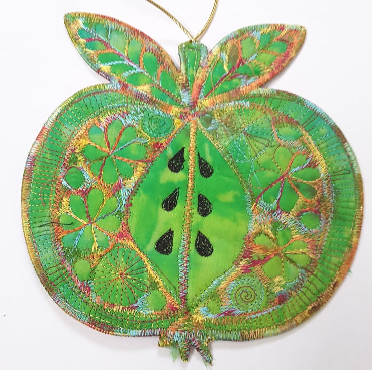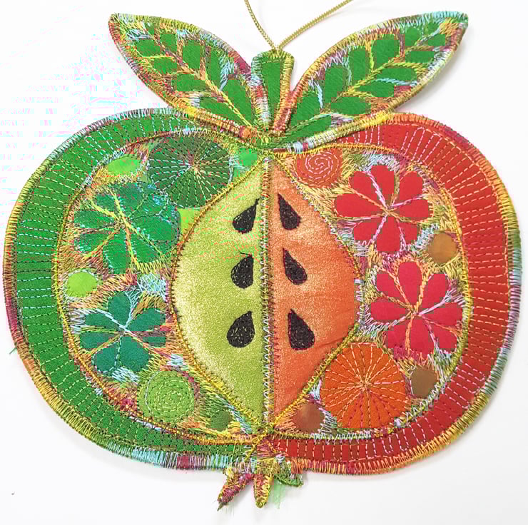 This is a handmade textile apple decoration