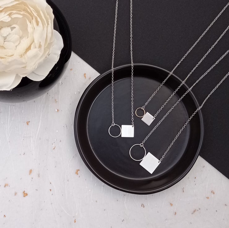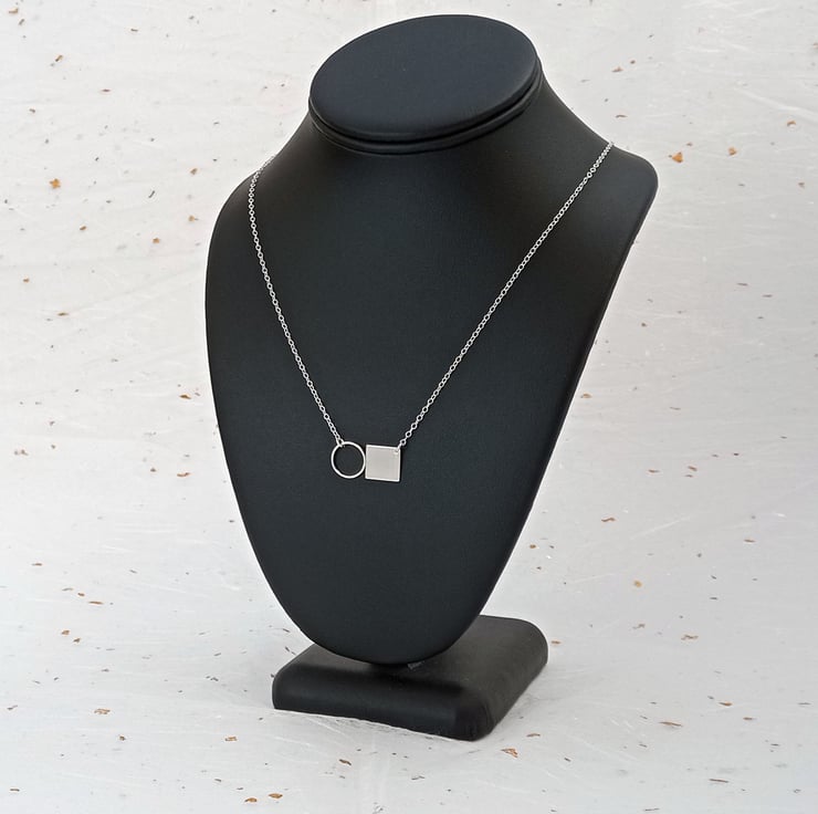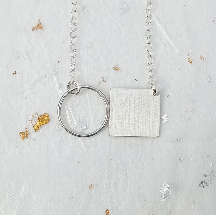 Recycled sterling silver circle & square necklace - handmade geometric jewellery