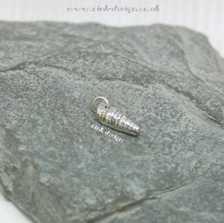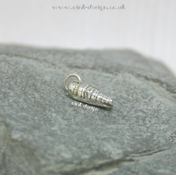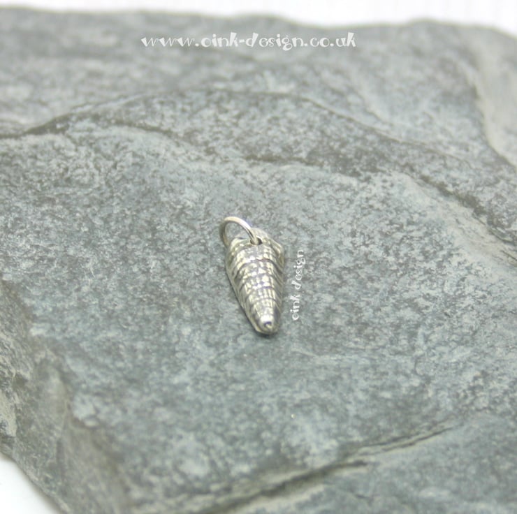 This is a small fine silver (999) sea shell with a sterling silver (925) jump ring.
