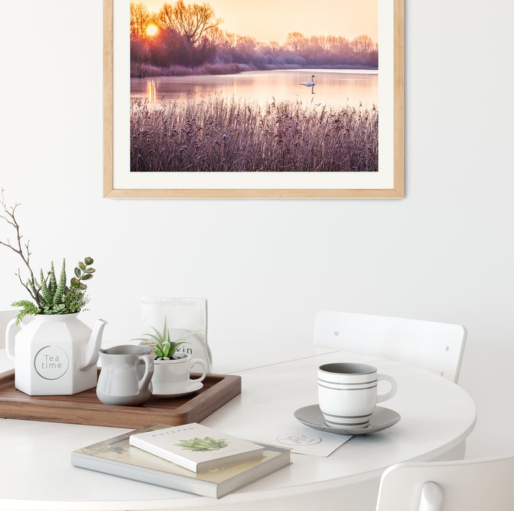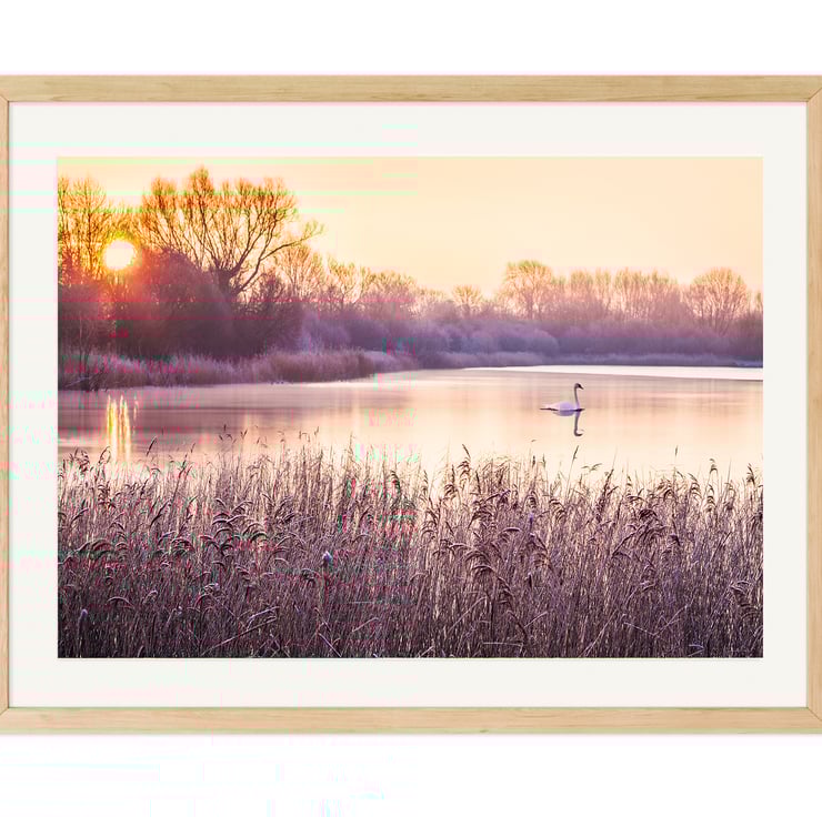 A beautiful limited edition (250) photograph of a tranquil dawn on one of the lakes in the Cotswold Water Park in Gloucestershire, UK.