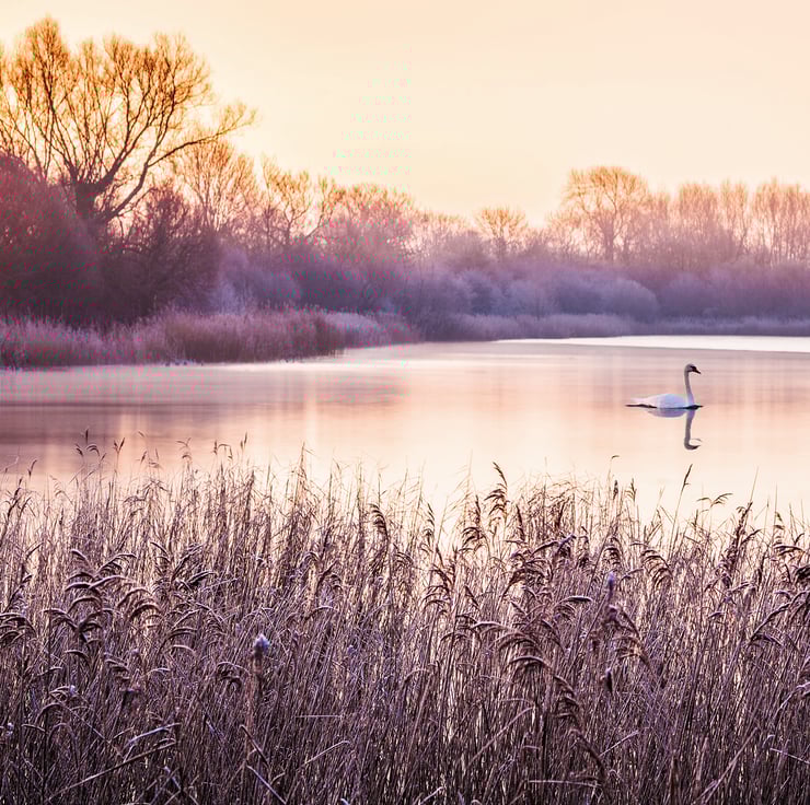 The morning this image was taken was bitterly cold but windless, the surface of the lake smooth as glass and the sense of tranquility was completed when the solitary swan glided past.