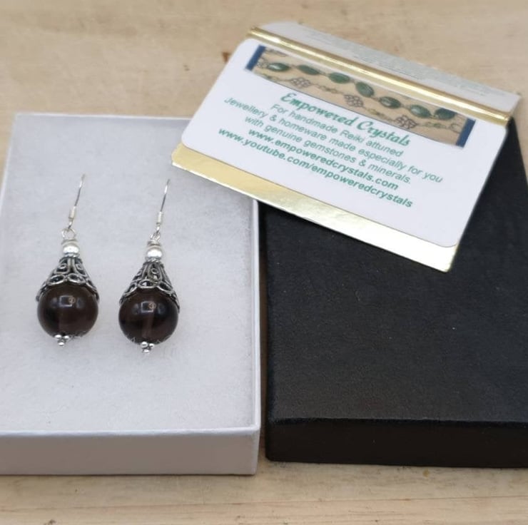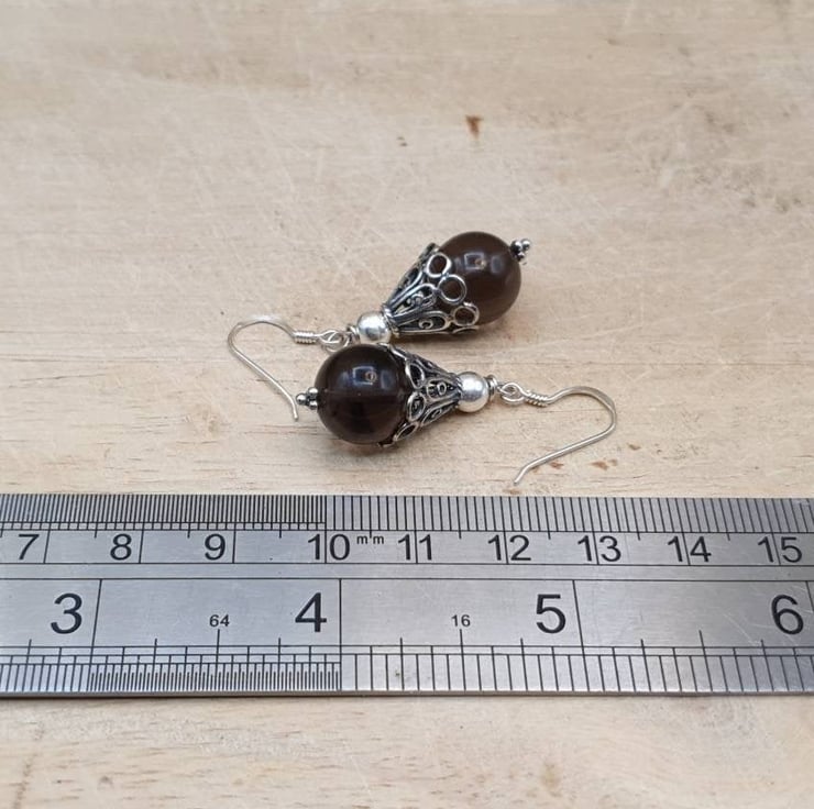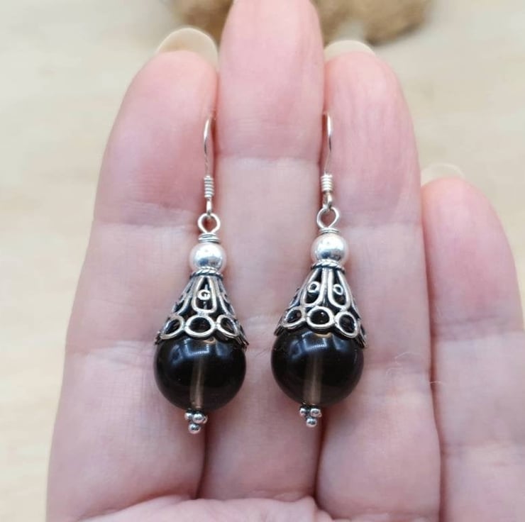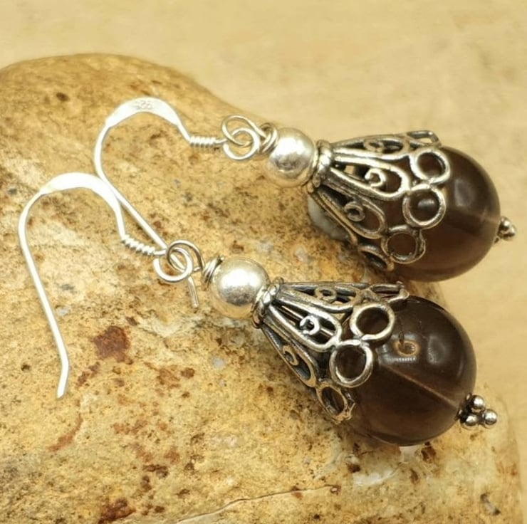 These are Bali silver cone Smoky Quartz earrings that I've made with handmade Bali silver beads. Bali silver is up to 99% silver but is not hallmarked or stamped.