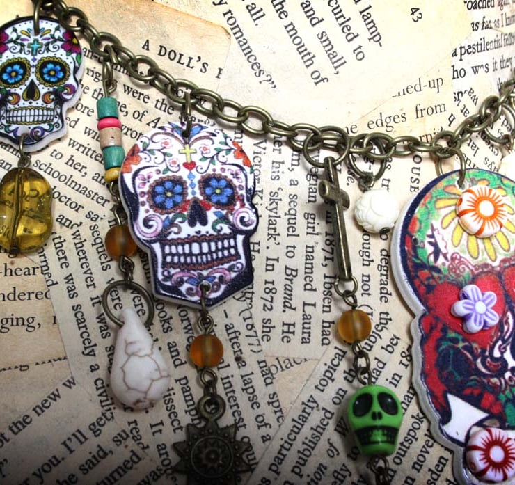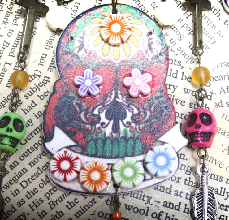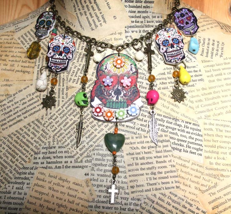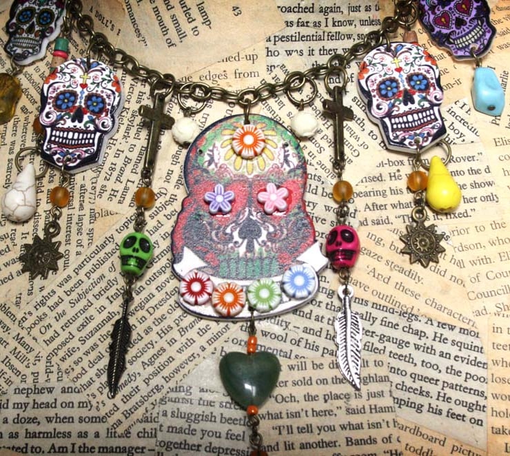 This necklace was inspired by the Mexican Holiday Dia de los Muertos, honouring those that have passed on.
