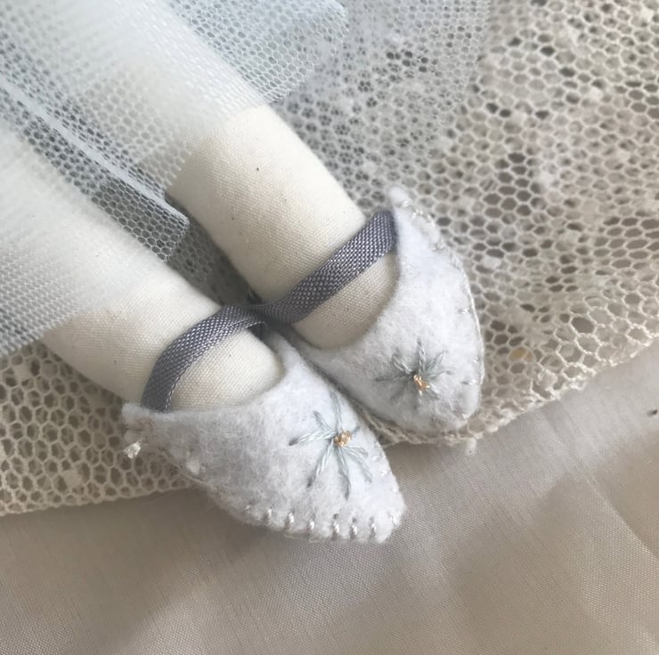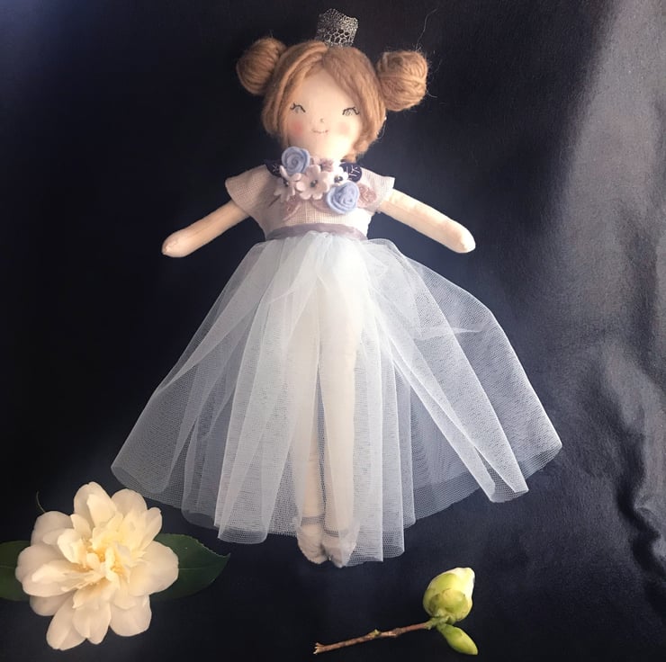 Please note that due to issues with suppliers because of the present situation, the ribbon around Celeste's waist and on her shoes will be a soft pink, not grey as shown in the picture.