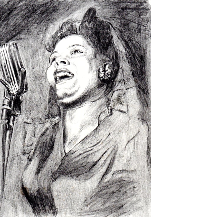 It's well known among my friends and relations that Billie Holiday is my favourite singer and has been for for over fifty years, in which time I've created many images of her. I don't think she was ever at ease in front of the camera but there are a few pictures, usually taken when performing where she looks radiant and very alive. The popular image of Billie is that her songs are depressing or harrowing when in fact the vast majority were happy and joyful. I want to capture this feeling in the portraits I make of her. 'Billie' the recently released film about her promises to shed new light on her all too short life.