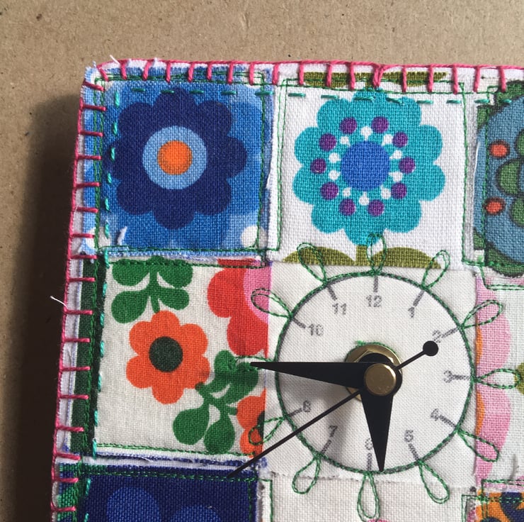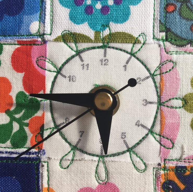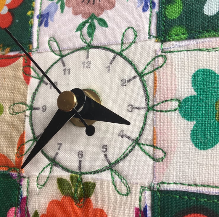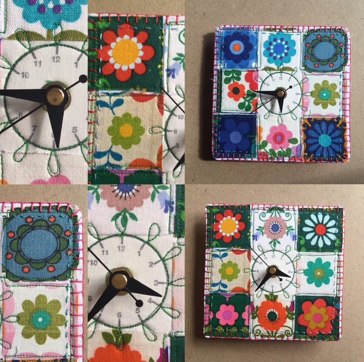 Every clock is unique, sometimes I’m lucky to have enough fabric to make a few in the range. I have more of these patches, looking forward to making more, sometime soo. I hope.