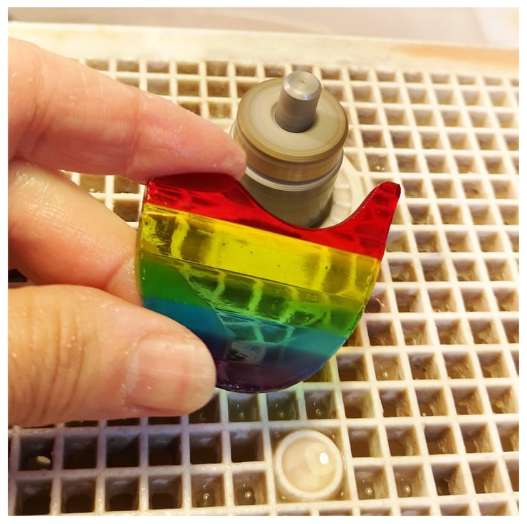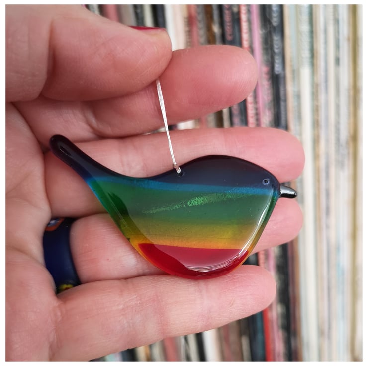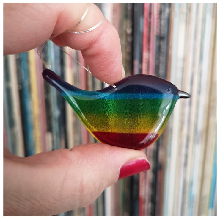 These little birds are a labour of love as I make the rainbow glass and then grind each one into shape using cold working tools and machinery, before a second and sometime third firing. See images.
