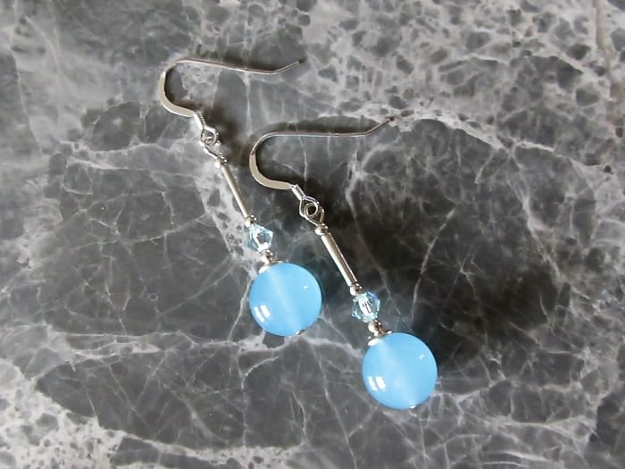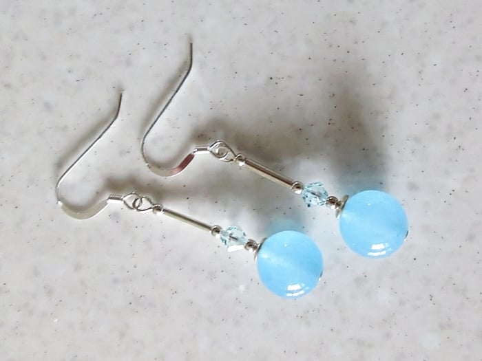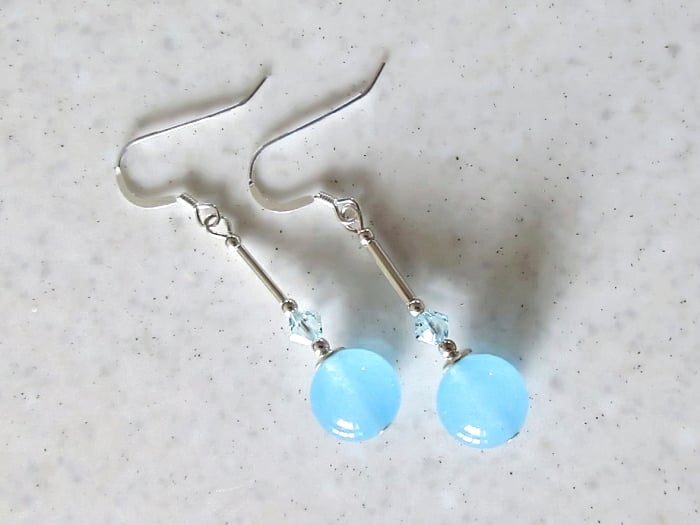 Elegant handmade drop earrings in a pretty aquamarine shade of blue.