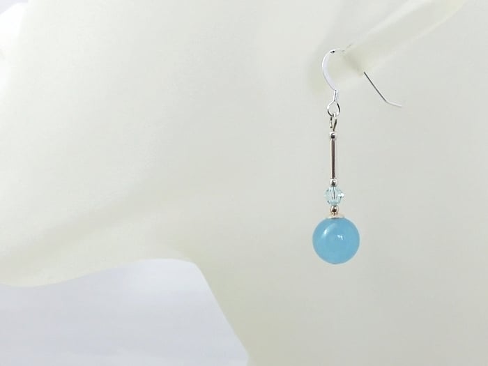 Aquamarine Blue Jade Earrings With Sparkly Crystals & Sterling Silver Tubes