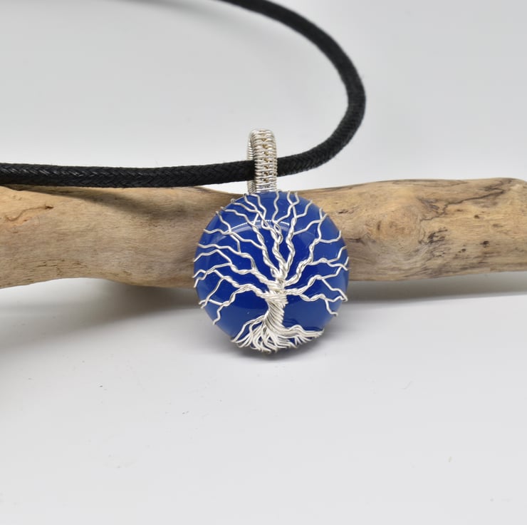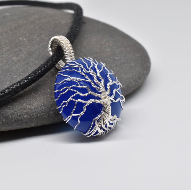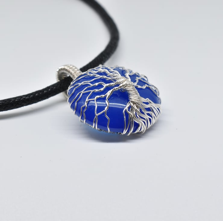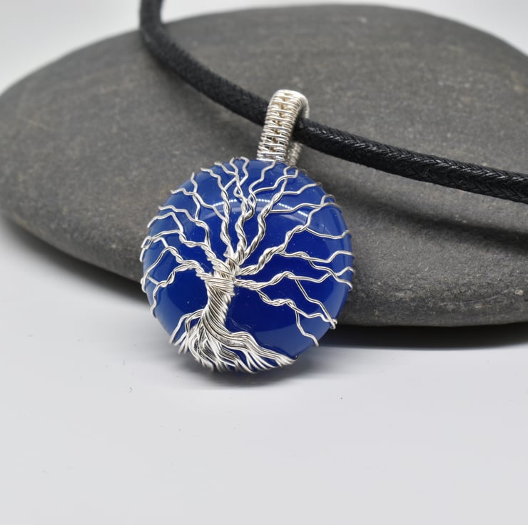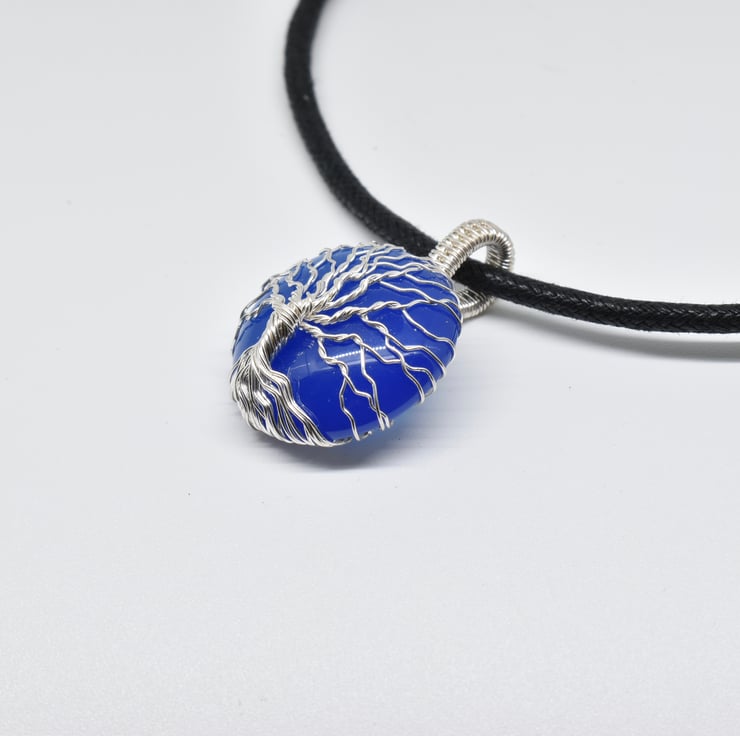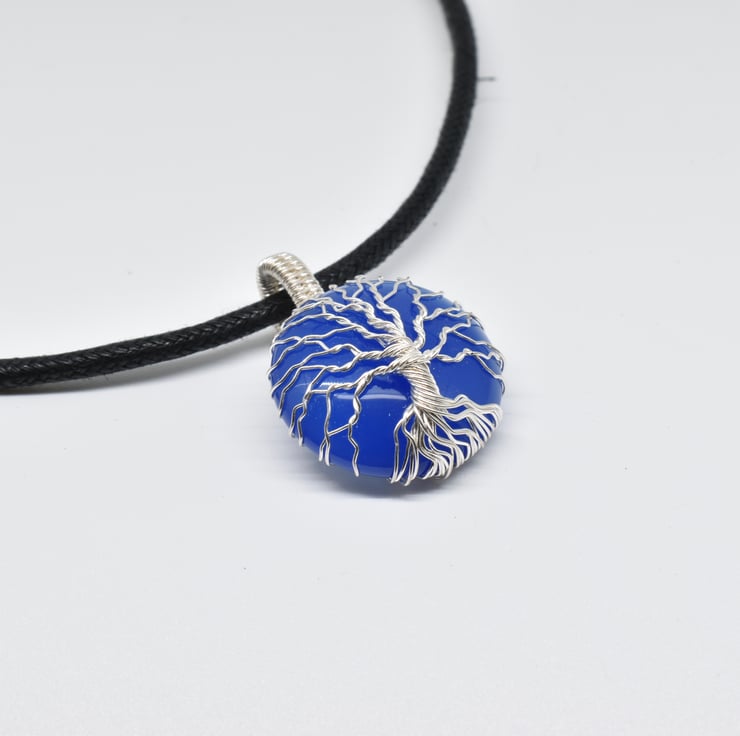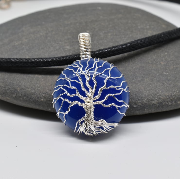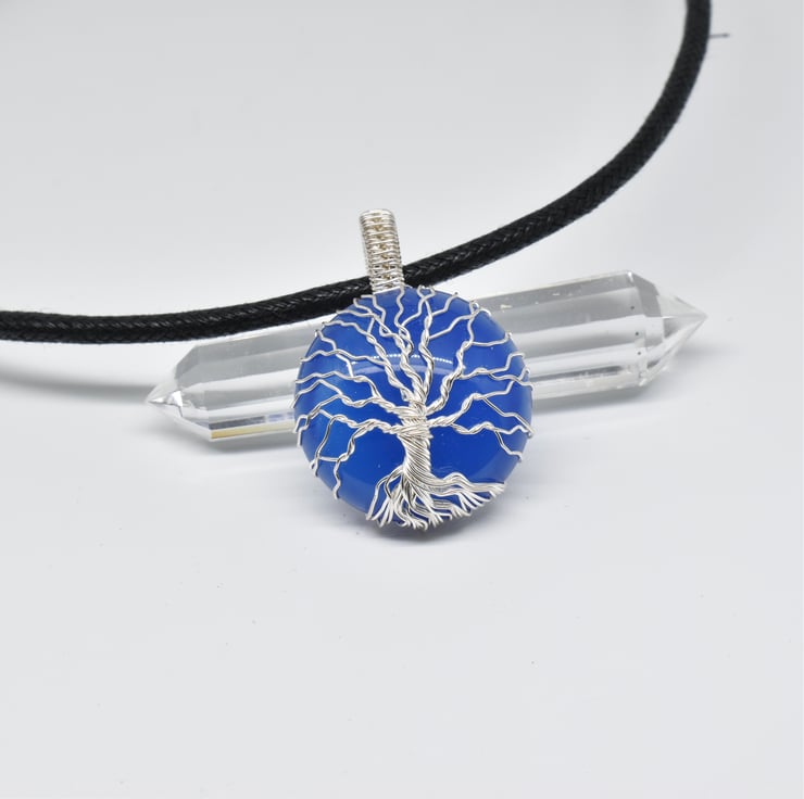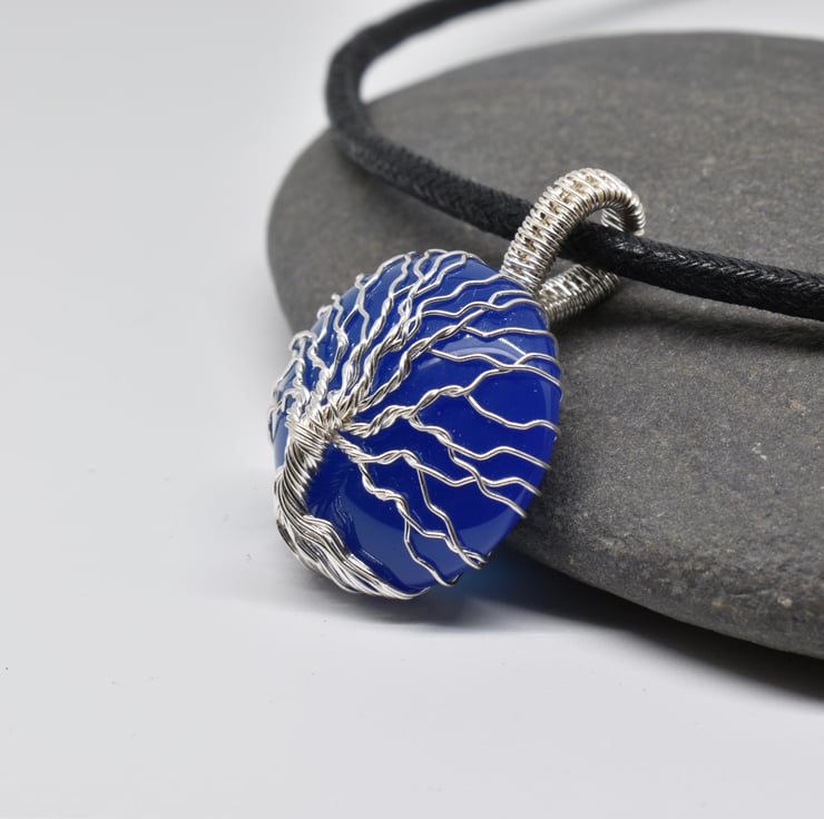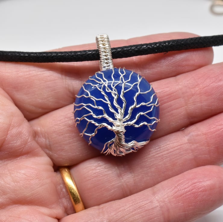 A blue onyx tree of life pendant I have handmade using silver filled wire.