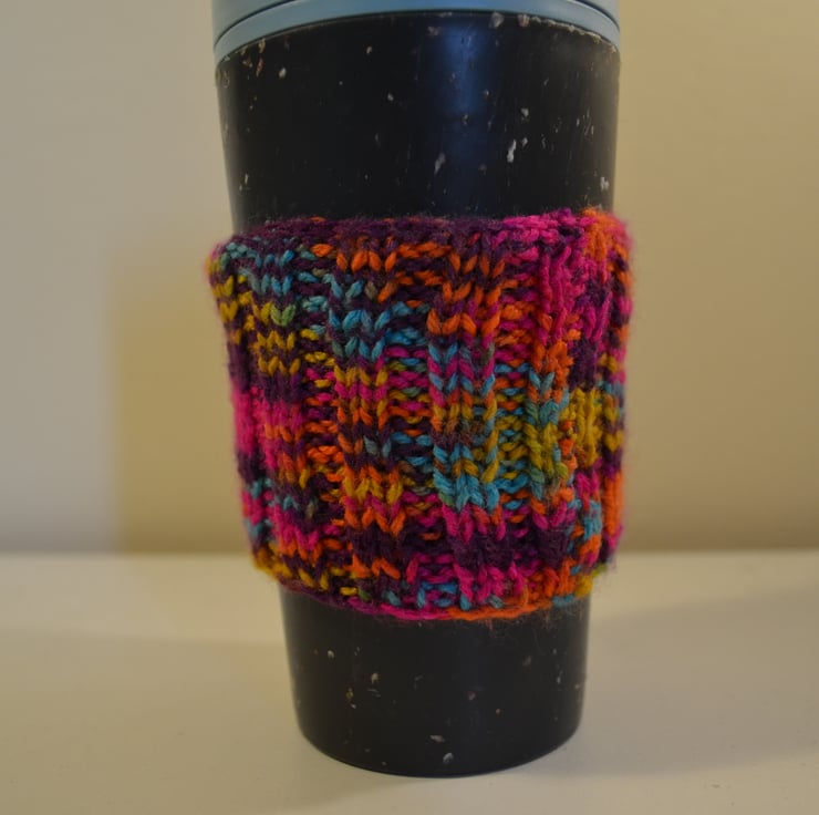 Vibrantly coloured vertical stripe cup cosies. Four available in this colourway