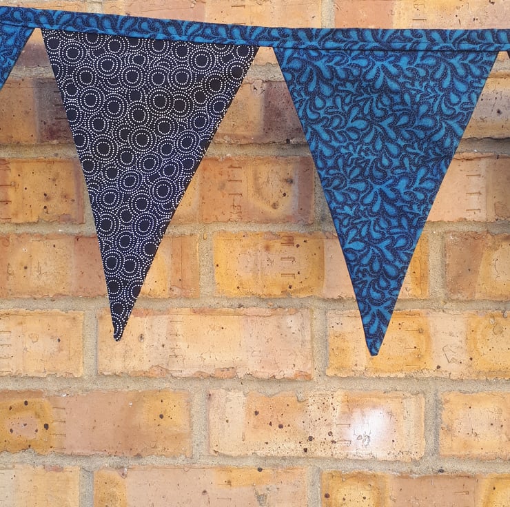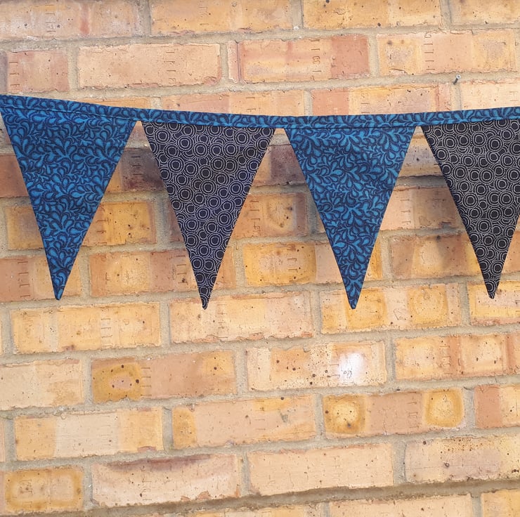 Bunting in teal and black circle fabric. Free uk delivery.