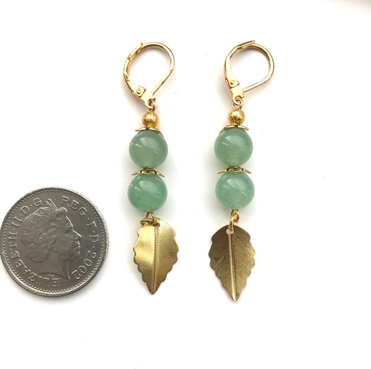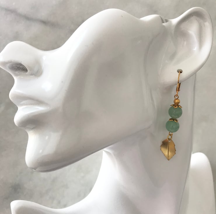 The earrings are completed with lever-back ear wires and golden leaves hung from the base.