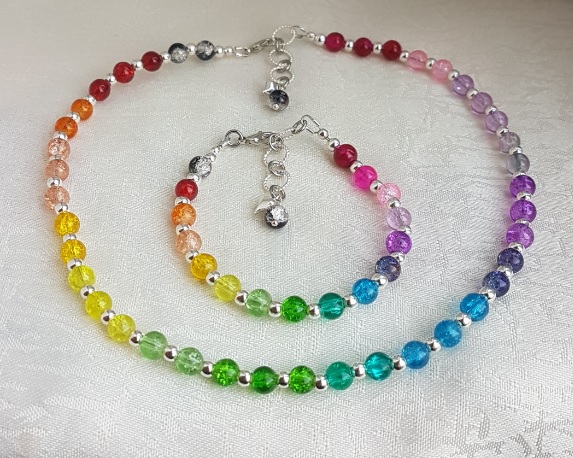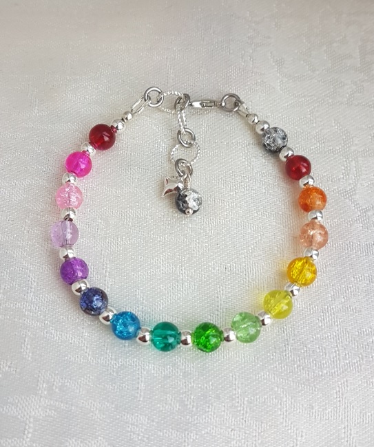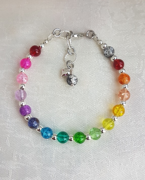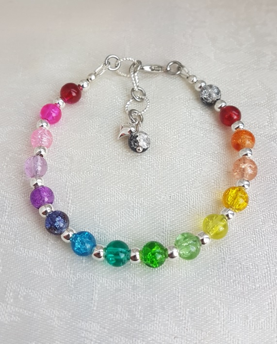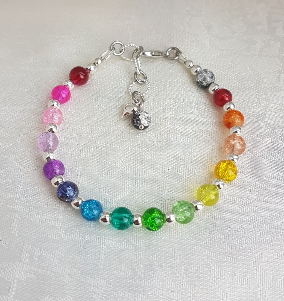Gorgeous Rainbow bead bracelet, a fabulous, colourful little beady bracelet. Beautiful crackle glass beads in all the colours of the Rainbow and more. Great as a gift or as a treat for yourself.