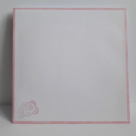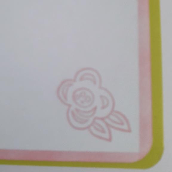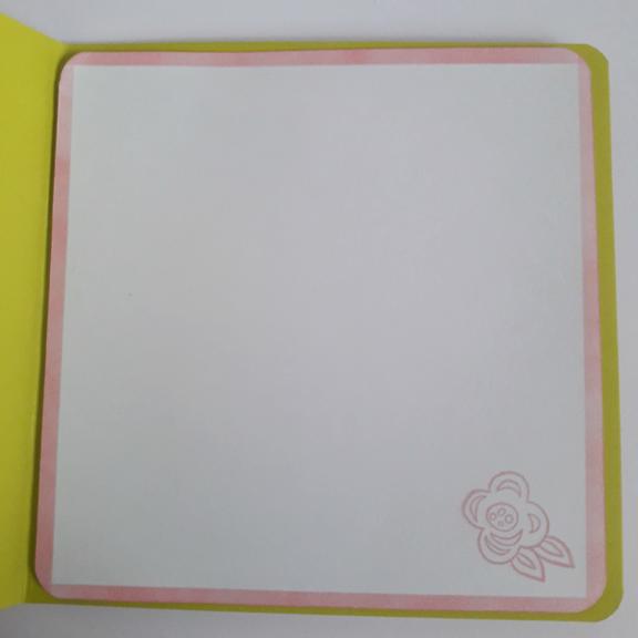 The insert has pink inked edges and a flower stamped in one corner, the white envelope has the same edges and stamped flower.
