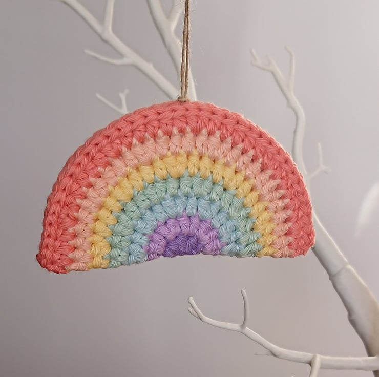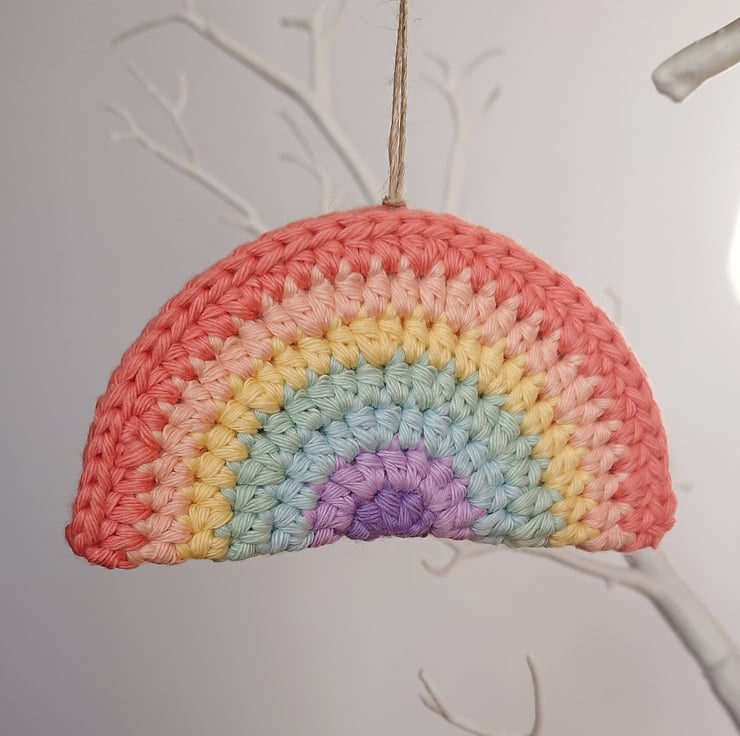 Crocheted Rainbow Hanging Decoration - Pale colourway