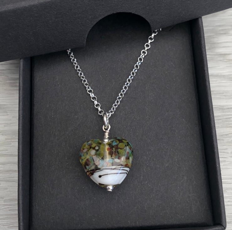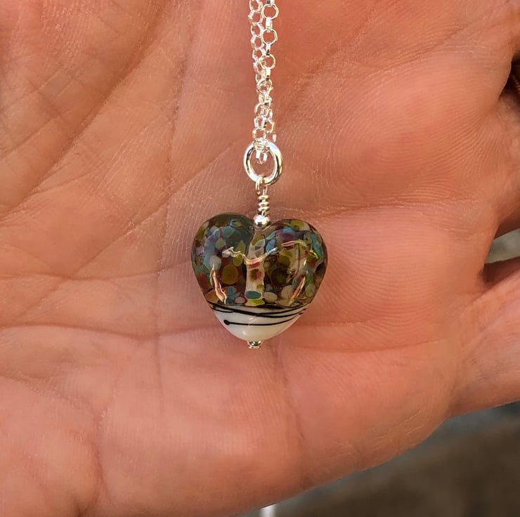 The heart measures approximately 14x12x9mm had has been hand wired onto a sterling silver headpin with sterling silver beads.