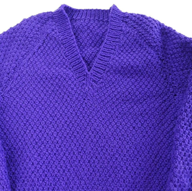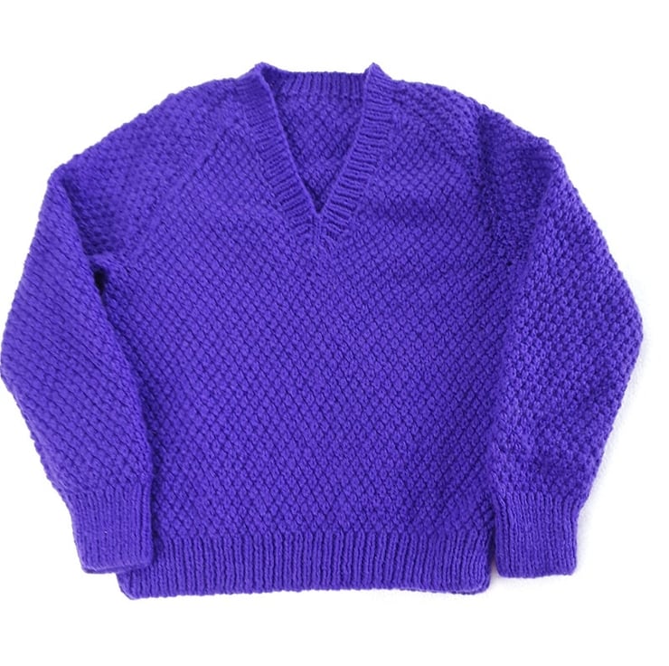 Hand knitted textured purple jumper - sweater - to fit 26 inch chest - boys jumper - girls jumper -V neck sweater - children's knitwear