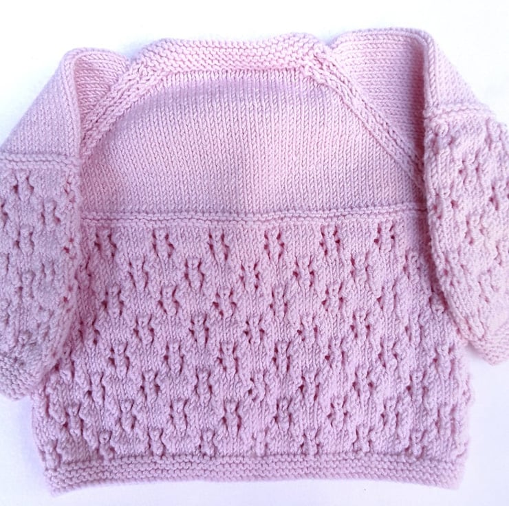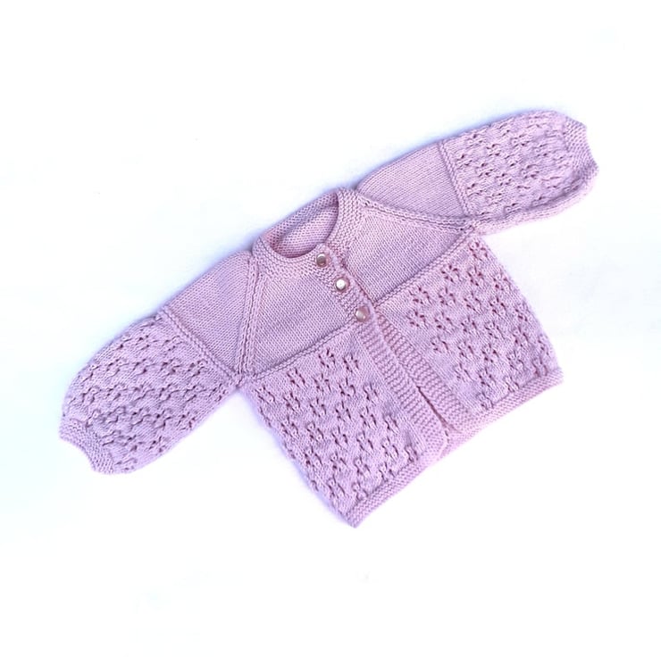 Hand knitted pink baby cardigan merino wool 0 - 3 months - knitted baby clothes - babies clothing - baby girls cardigan