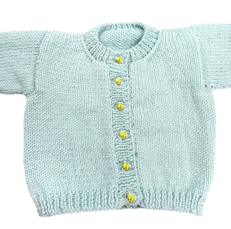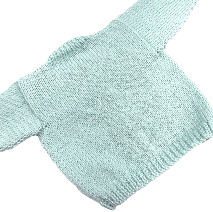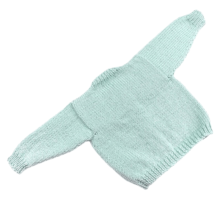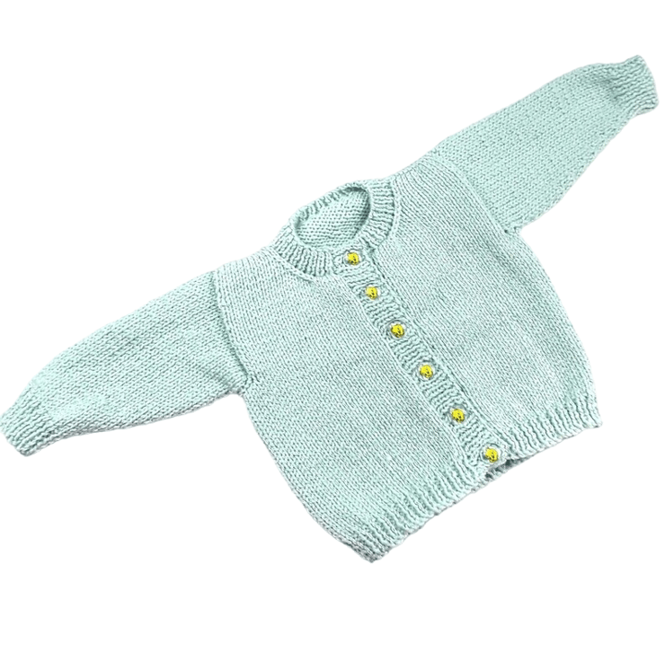 Snuggle your little one in this handmade duck egg blue baby cardigan! Designed with love, this gender-neutral knit is perfect for keeping newborns cosy and stylish from day one.