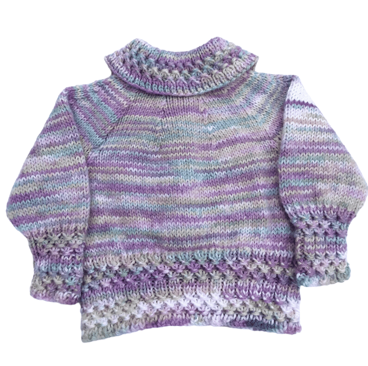 Elevate your baby's wardrobe with this delightful hand-knitted baby smocked cardigan and hat set. Crafted with care using a soft and beautifully multicolored yarn known as 'Cherry Blossom,' this ensemble boasts muted shades of lilac, pink, and green, evoking the beauty of delicate spring blooms.