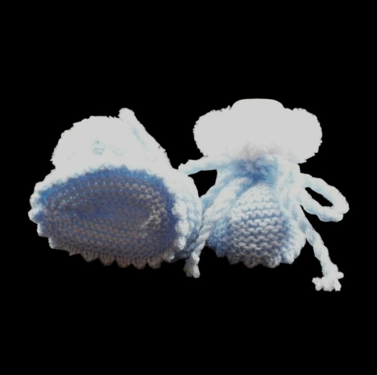 Hand-Knitted Baby Boy Blue Booties, a charming and cozy choice to keep your little one's feet snug and stylish.