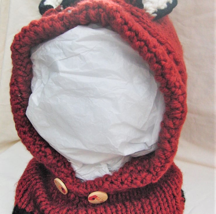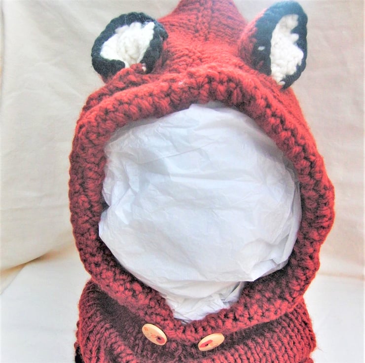 Chunky Winter Hand Knitted Fox Cowl Hood, Super Chunky Hat, Children's Cowl, Adult's Cowl, Birthday Gift, Children's Hats, Novelty Fox Hat