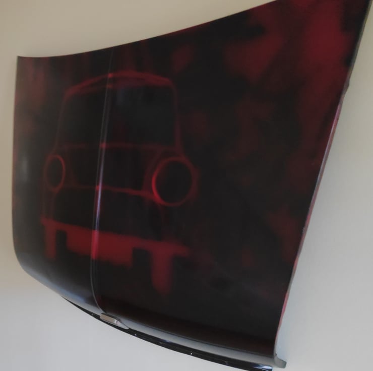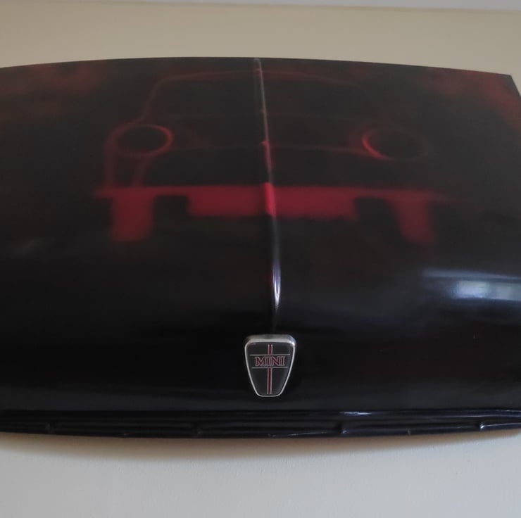 We had an old Mini bonnet that was missing the rest of the car and were looking for something to do with it. We'd been experimenting with making prints of our steel wall art models and so decided to merge the two into a truly unique wall hanging design.