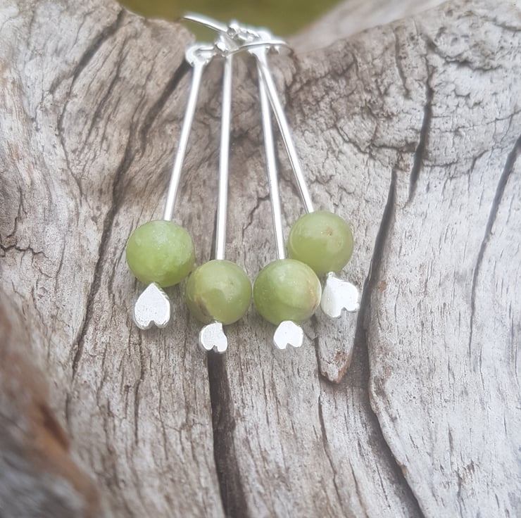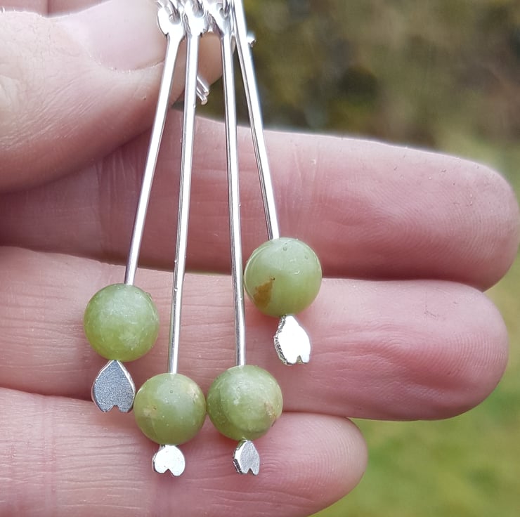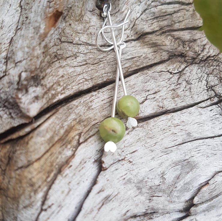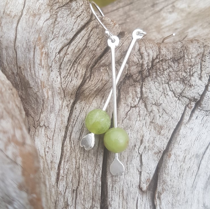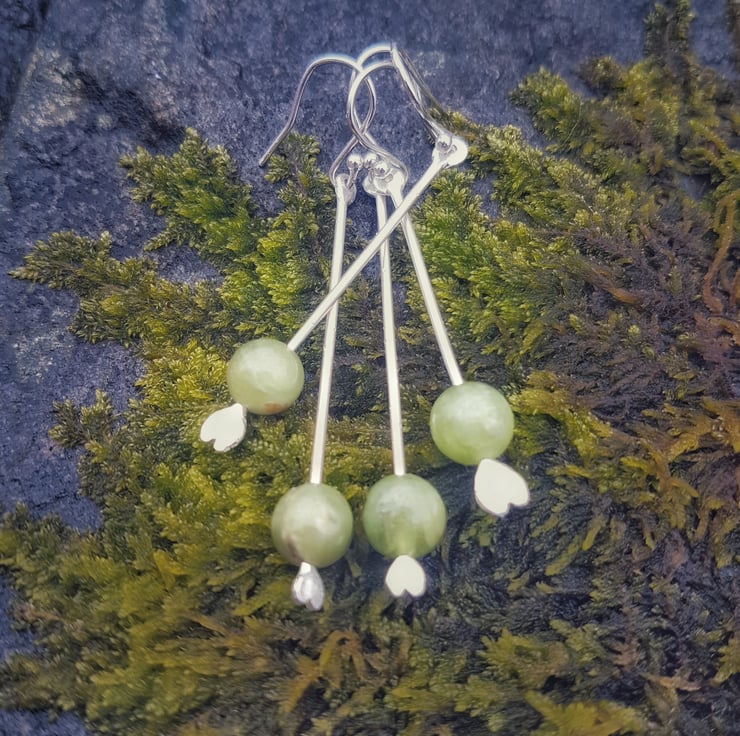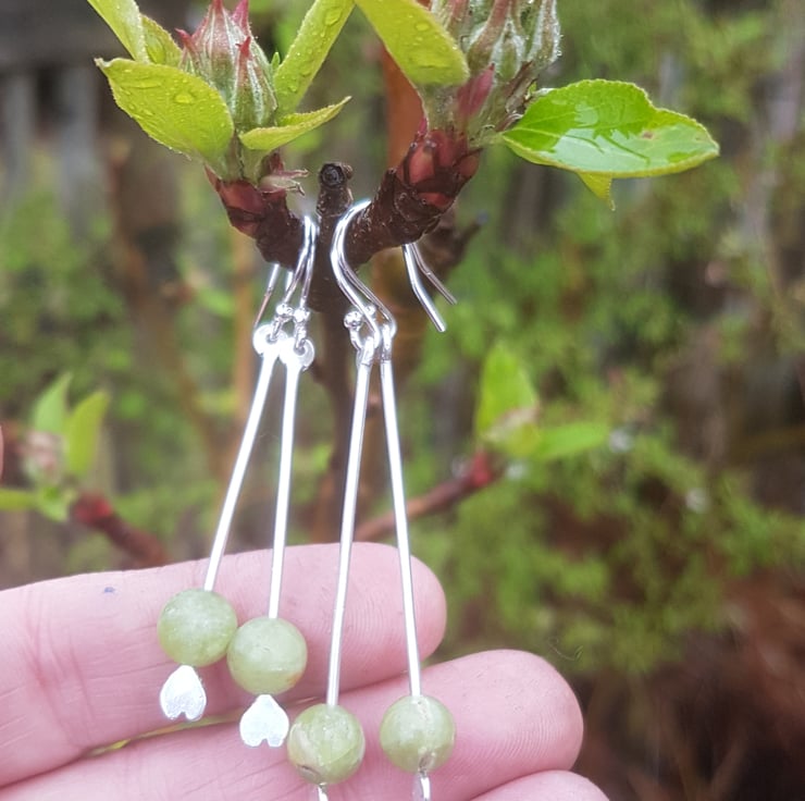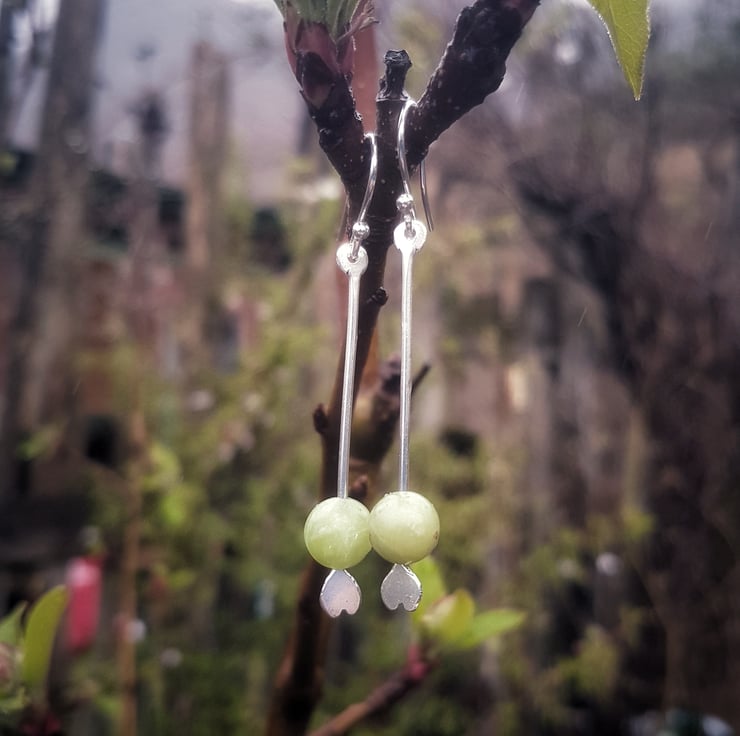 The earrings measure 55-60mm from top of hook to tip of sprout, the beads are 8mm Peridot Olivine.