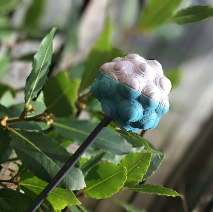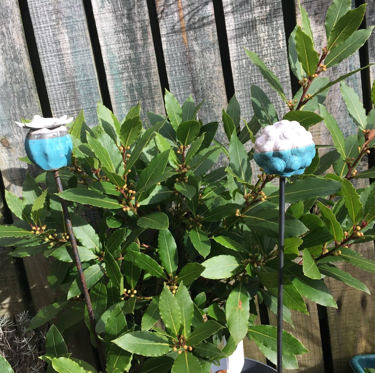 My Ceramic garden pod stakes are handmade as a unique, bespoke design. No two are alike and add a splash of colour to your garden no matter what time of year it is.