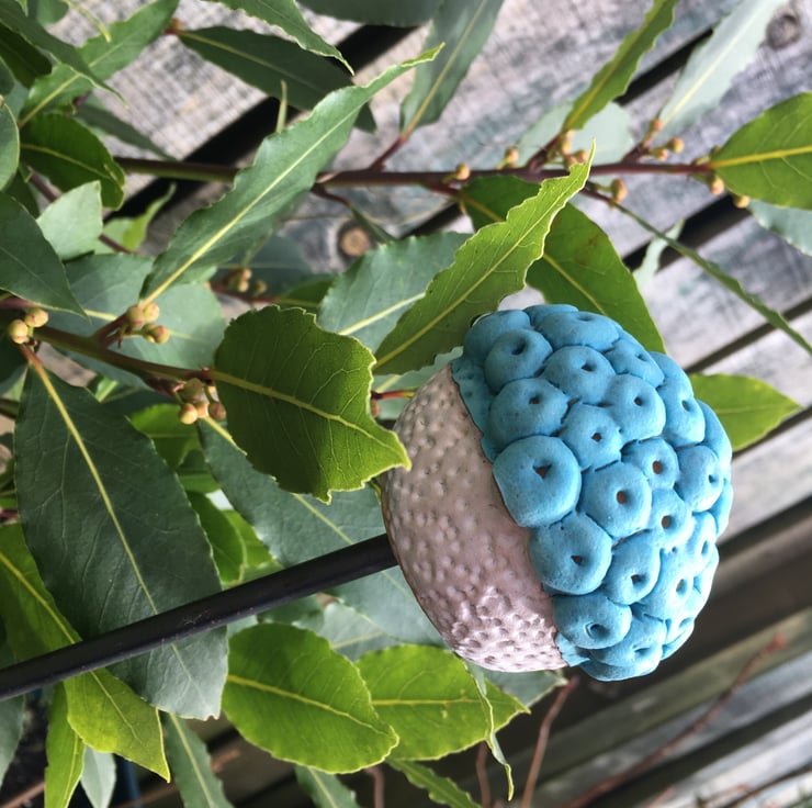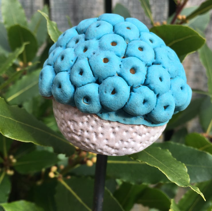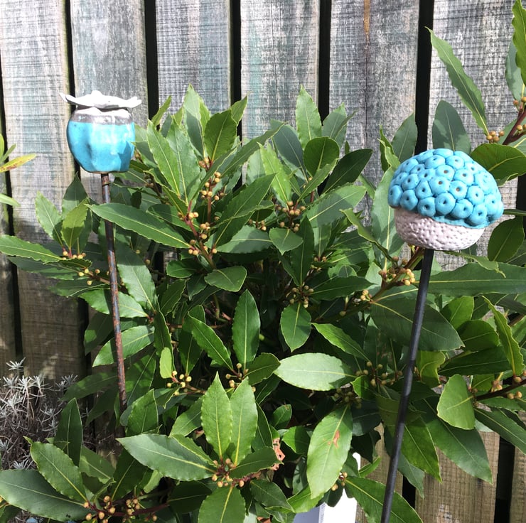 My Ceramic garden pod stakes are handmade as a unique, bespoke design. No two are alike and add a splash of colour to your garden no matter what time of year it is.