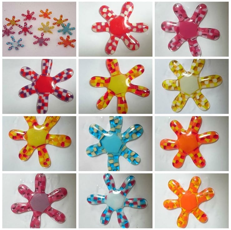 This Fused Glass Home Kits are a great way for you to have fun and then be able to gift them or keep for yourself. In the kit you receive everything you need to make a Fused Glass flower. These kits are aimed at anyone from 5 to 105.
