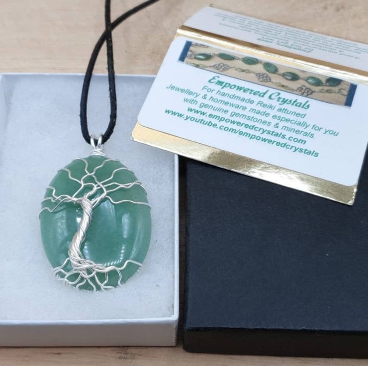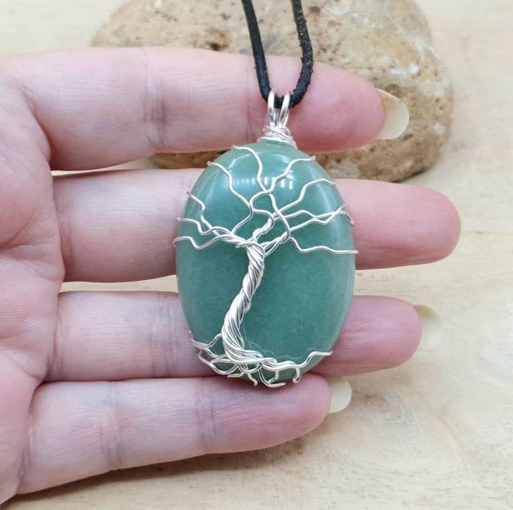 Wire Wrap Aventurine tree of life pendant necklace. Reiki jewellery