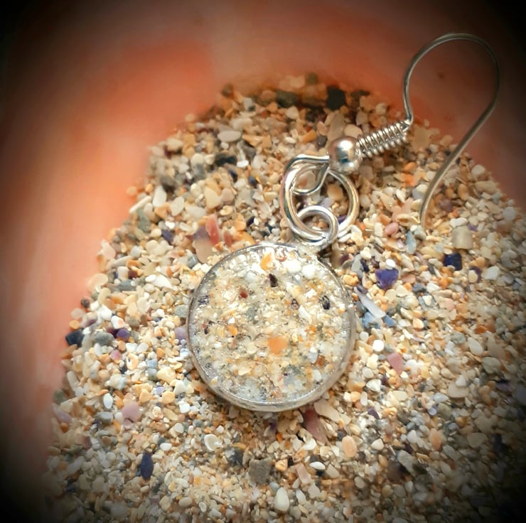 Each piece of my sand jewellery is pictured alongside the sand from which it was made ...giving you some idea of its composition..texture..and colour