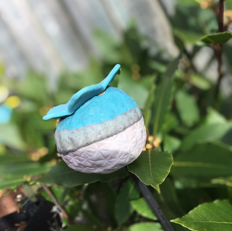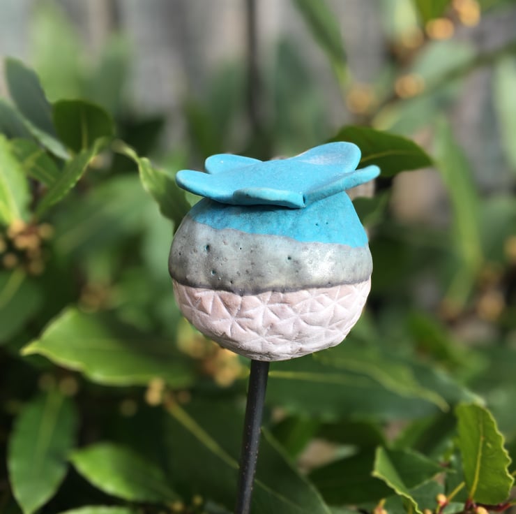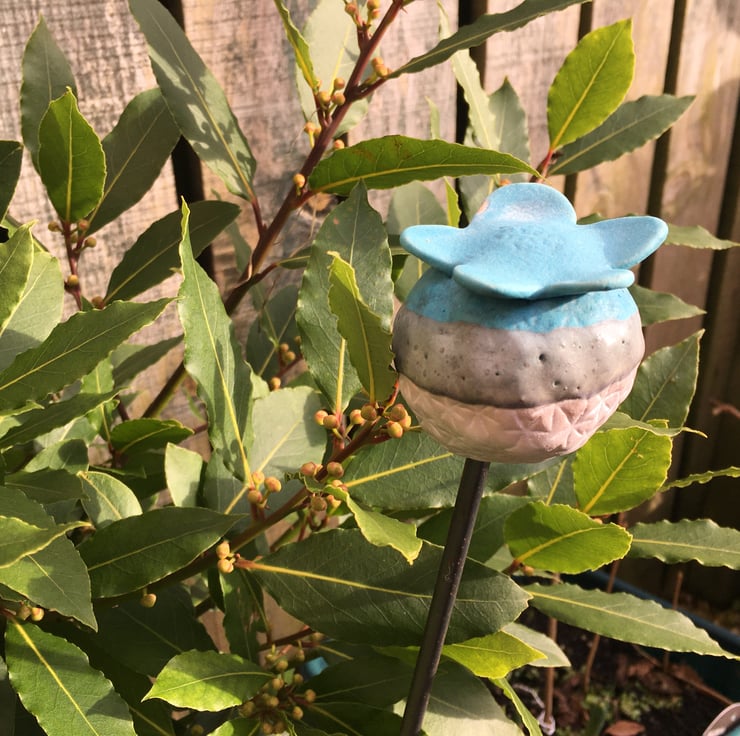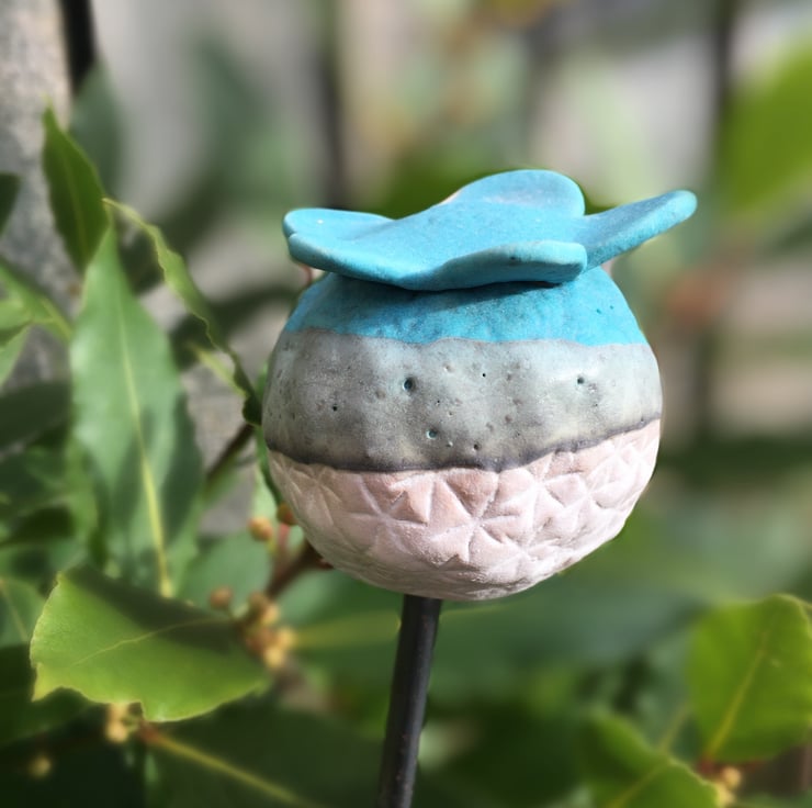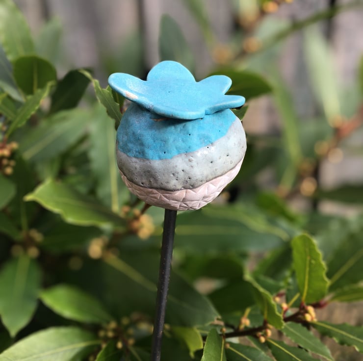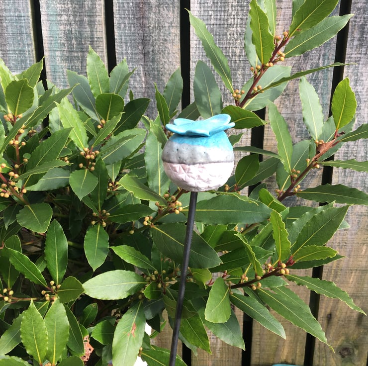 My Ceramic garden pod stakes are handmade as a unique, bespoke design. No two are alike and add a splash of colour to your garden no matter what time of year it is.