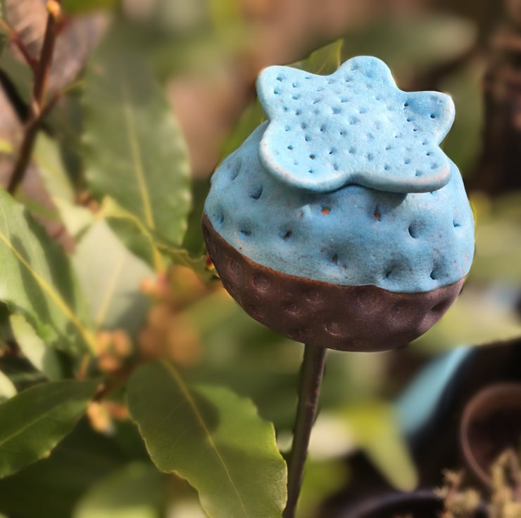 My Ceramic garden pod stakes are handmade as a unique, bespoke design. No two are alike and add a splash of colour to your garden no matter what time of year it is.