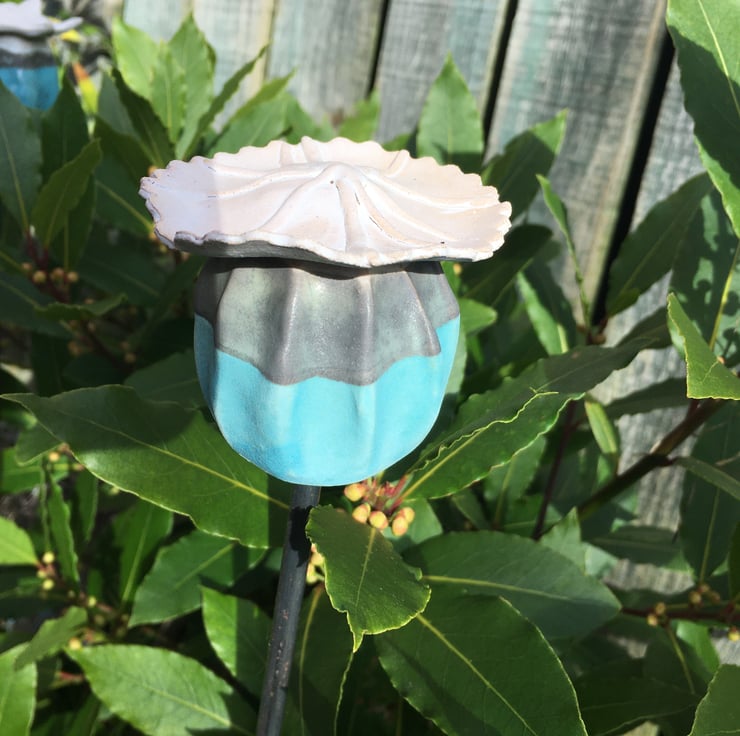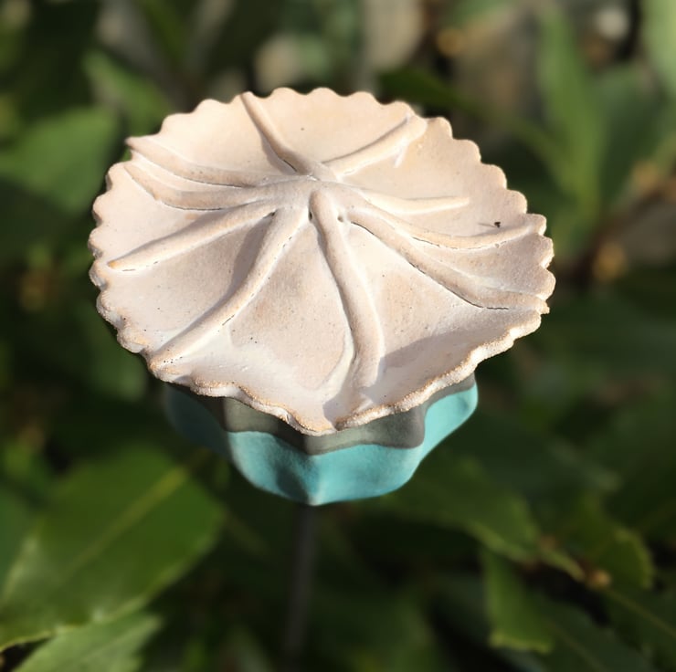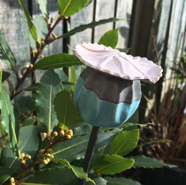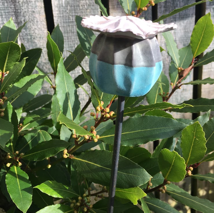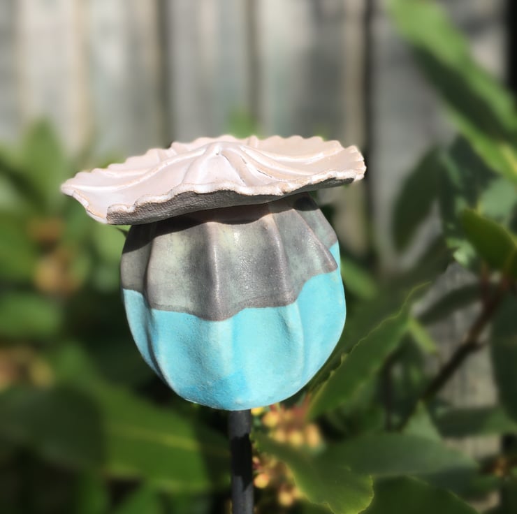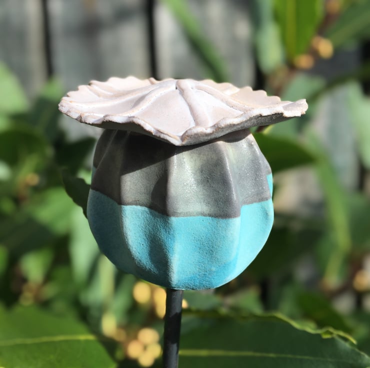 My Ceramic garden pod stakes are handmade as a unique, bespoke design. No two are alike and add a splash of colour to your garden no matter what time of year it is. This one is loosely based on a seed pod.
