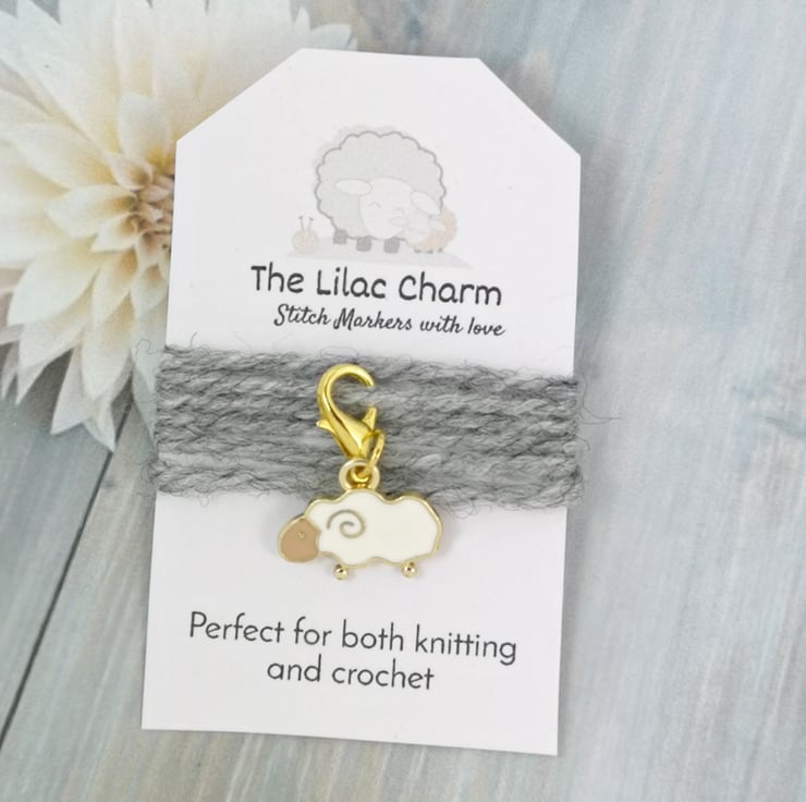 Adorable sheep enamel charm stitch marker to add to your favourite fibre project. Perfect for knitting and crochet.