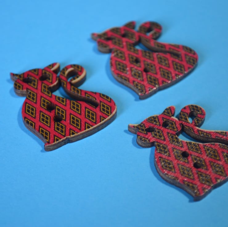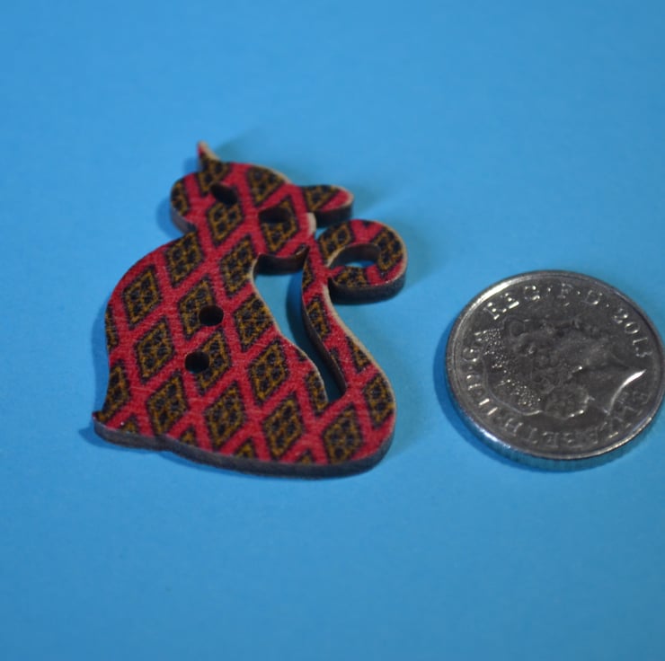 Wooden Cat Buttons Red Brown Diamond 3pk 30x25mm Kitty Pussy Kitten (CT13)