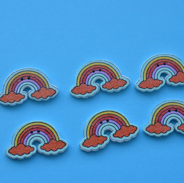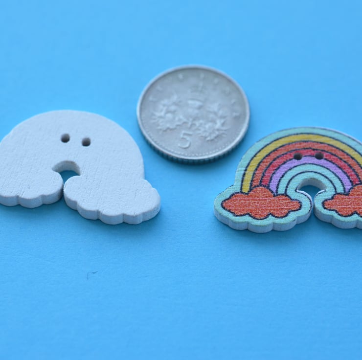 Cute printed wooden rainbow shaped buttons.