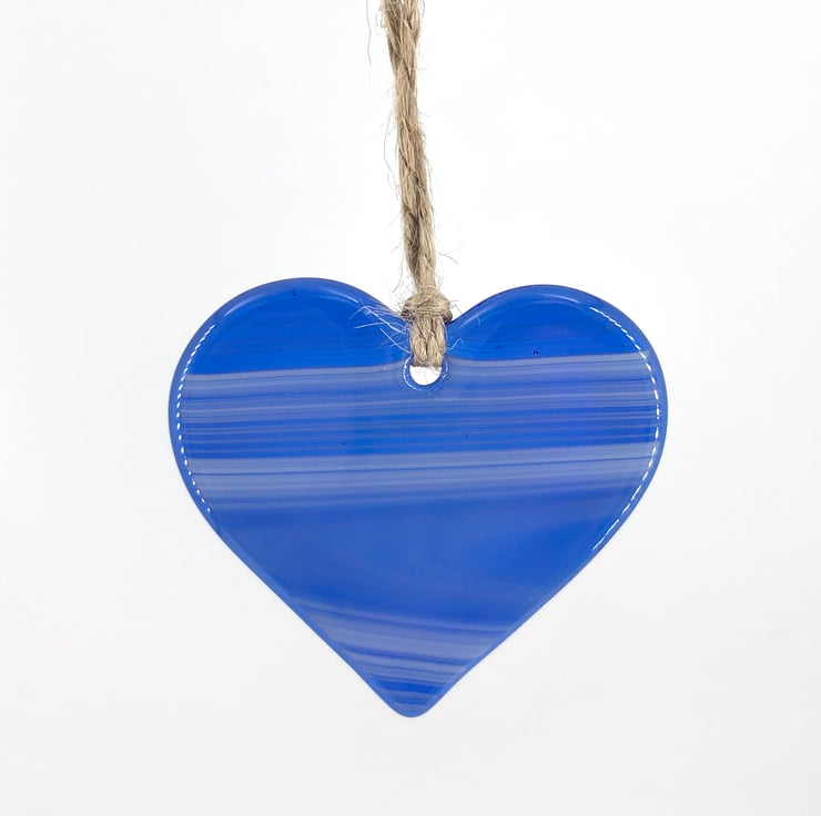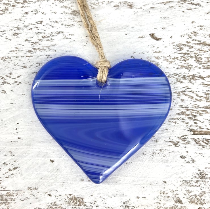 This gorgeous heart is made from streaky blue and white art glass.