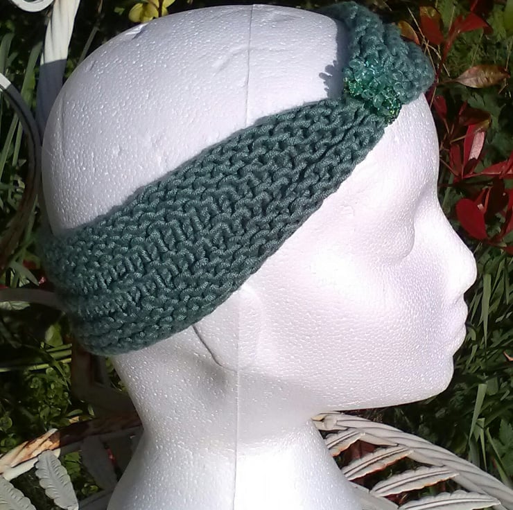 These bands which are thinner than my earmuffs and other headbands have a ring of beads as decoration. The bands are meant to be worn over the hair but you can decide to wear the jewel band centrally or to the side. These bands have a little of the vintage look especially when worn centrally and high on the head. They come in lovely strong plain colours. Do keep checking as I add new colours to the range.