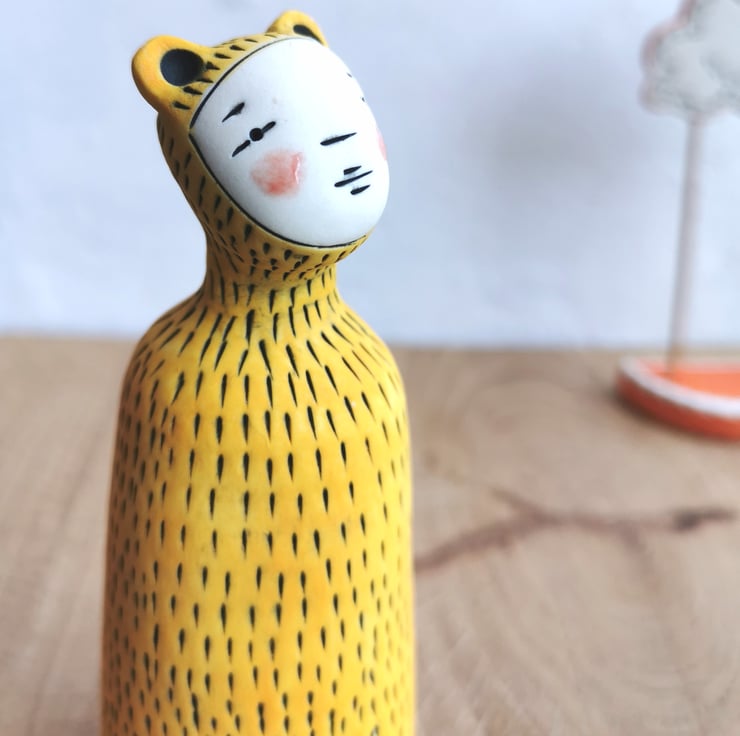 This Peculiar Person has been glazed with a deep yellow ochre underglaze.