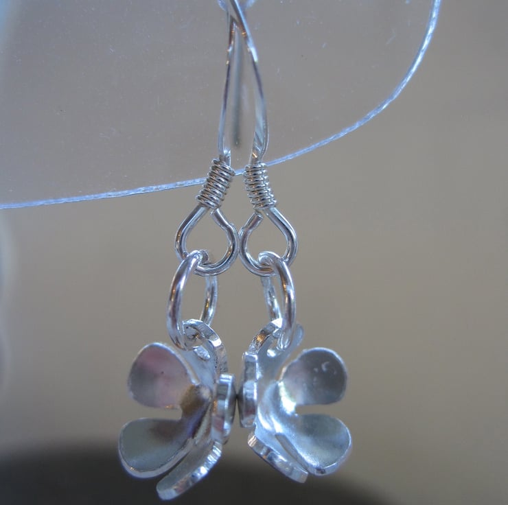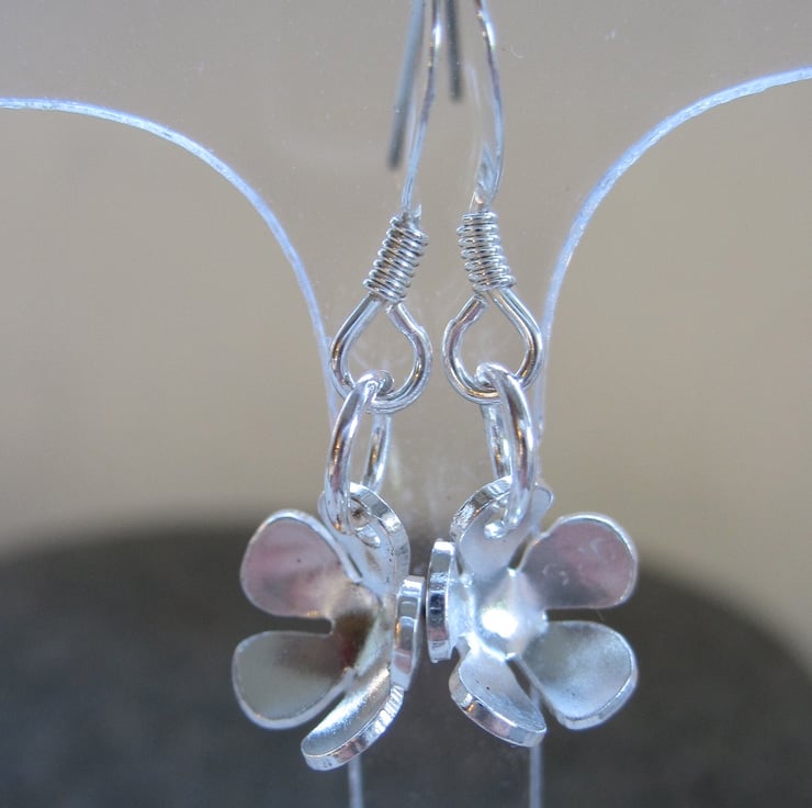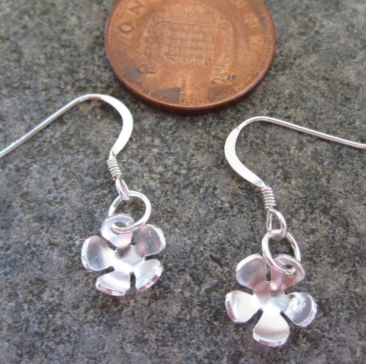 Even at my age, I am a hopeless romantic, full of Hearts & flowers - like these tiny sweet silver flower earrings. On a sterling silver hooks, they are light & wearable. The little flowers are shiny sterling silver.