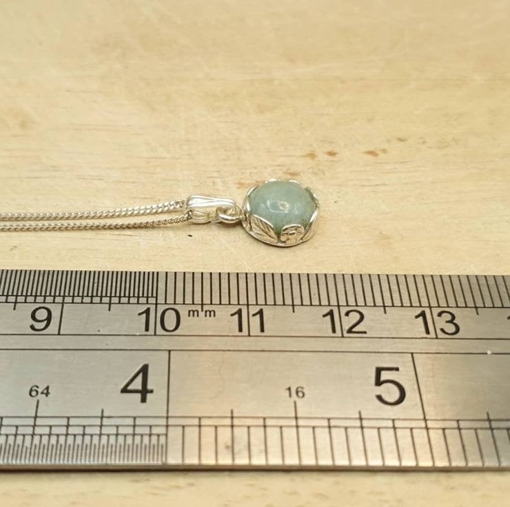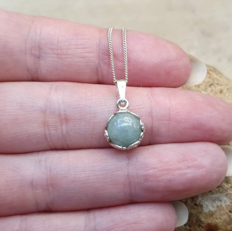 This is a tiny, delicate sterling silver Aquamarine Pendant Necklace.