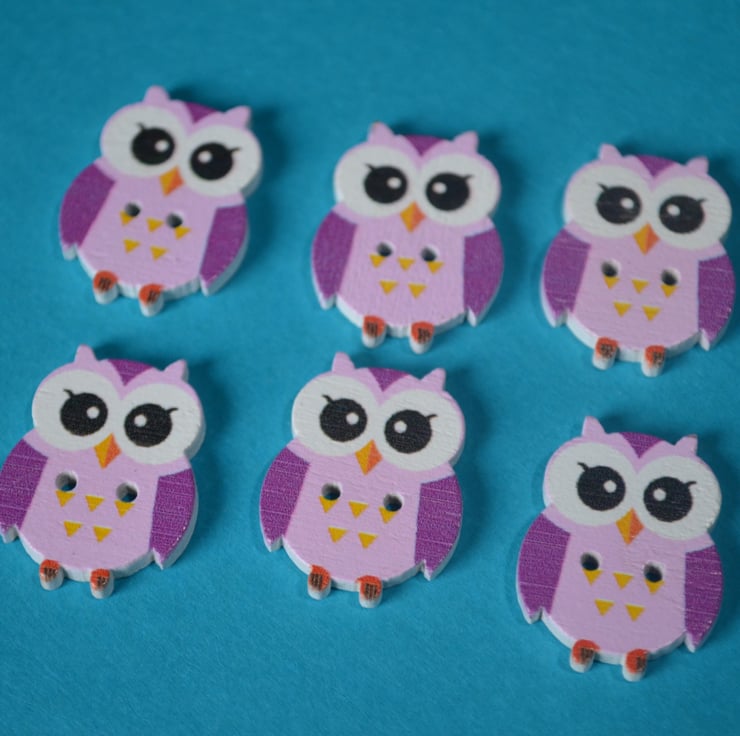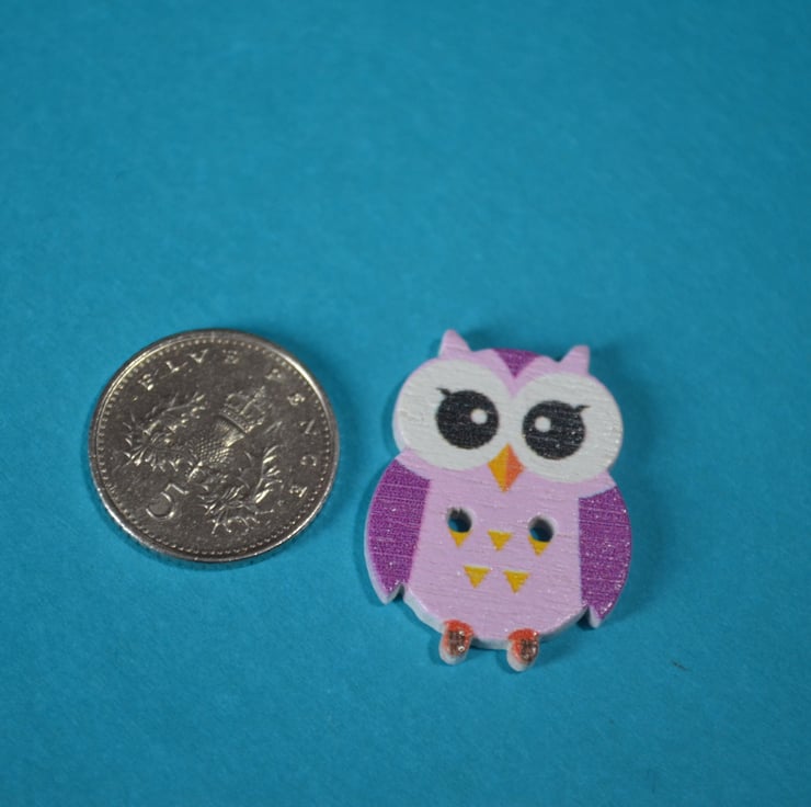 Cute printed wooden Owl shaped buttons.